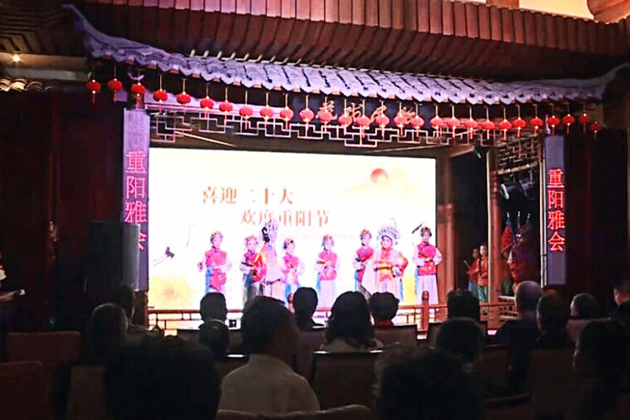 区诗书画社举办“喜迎二十大欢度重阳节”重阳雅会,老人们欢聚一堂,欣赏歌舞、诗词吟诵、乐器独奏等精彩节目,共同欢度重阳佳节。