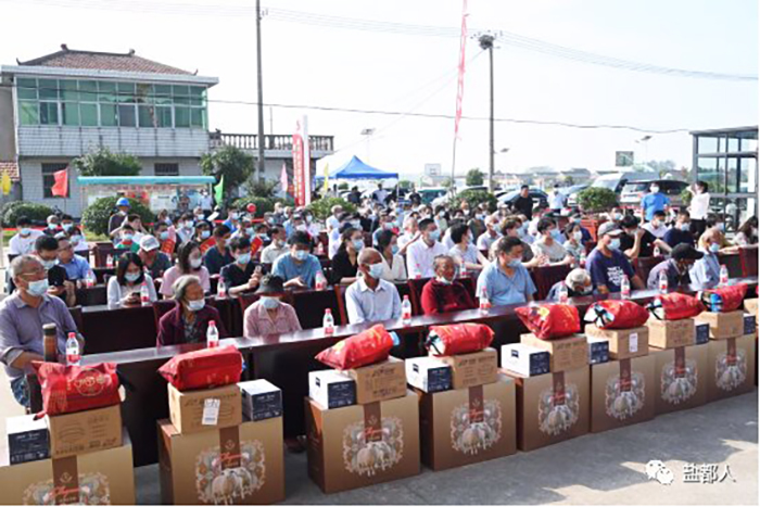 大冈镇同兴村举办重阳敬老节活动,向全村570名70岁以上的老人赠送生活大礼包。