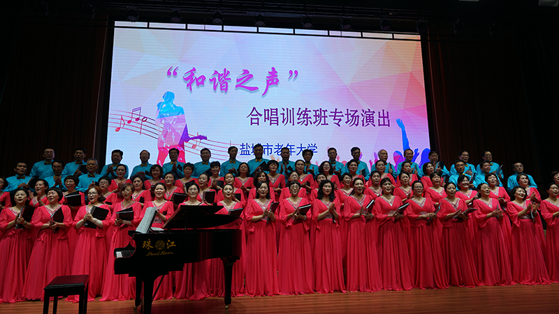 近日,市老年大学在报告厅举办了“和谐之声”合唱训练班专场演出。在舞台灯光照耀下,合唱训练班全体成学员,服装亮丽,神采奕奕。以混声合唱、女声合唱、男声合唱等形式,演唱了《深海》《西风情话》《当那天来临》《故乡的小路》《红蜻蜓》《友谊地久天长》《美丽的梦》《家乡》《江山》等经典歌曲。