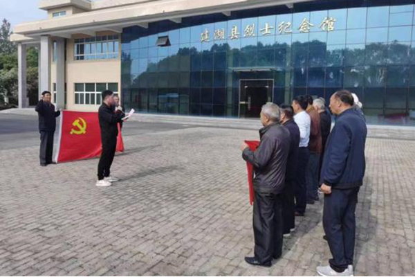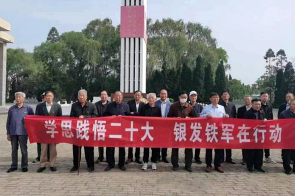 老干部一行首先来到华中鲁艺烈士纪念馆瞻仰革命烈士。全体党员在烈士纪念碑前,面向党旗,高举右臂,紧握右拳,重温入党誓词,感悟初心使命。支部书记顾政瑞深情发言:我们要不忘初心,牢记使命,始终胸怀“国之大者”,深刻领悟“两个确立”,不断增强“四个意识”,坚决做到“两个维护”,在学思践悟二十大中坚定理想信念,在银发铁军在行动中奋力谱写中国式现代化建湖新篇章。