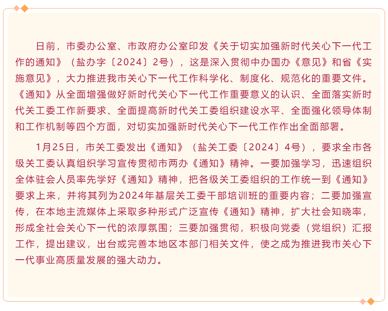 市委办市政府办下发《关于切实加强新时代关心下一代工作的通知》