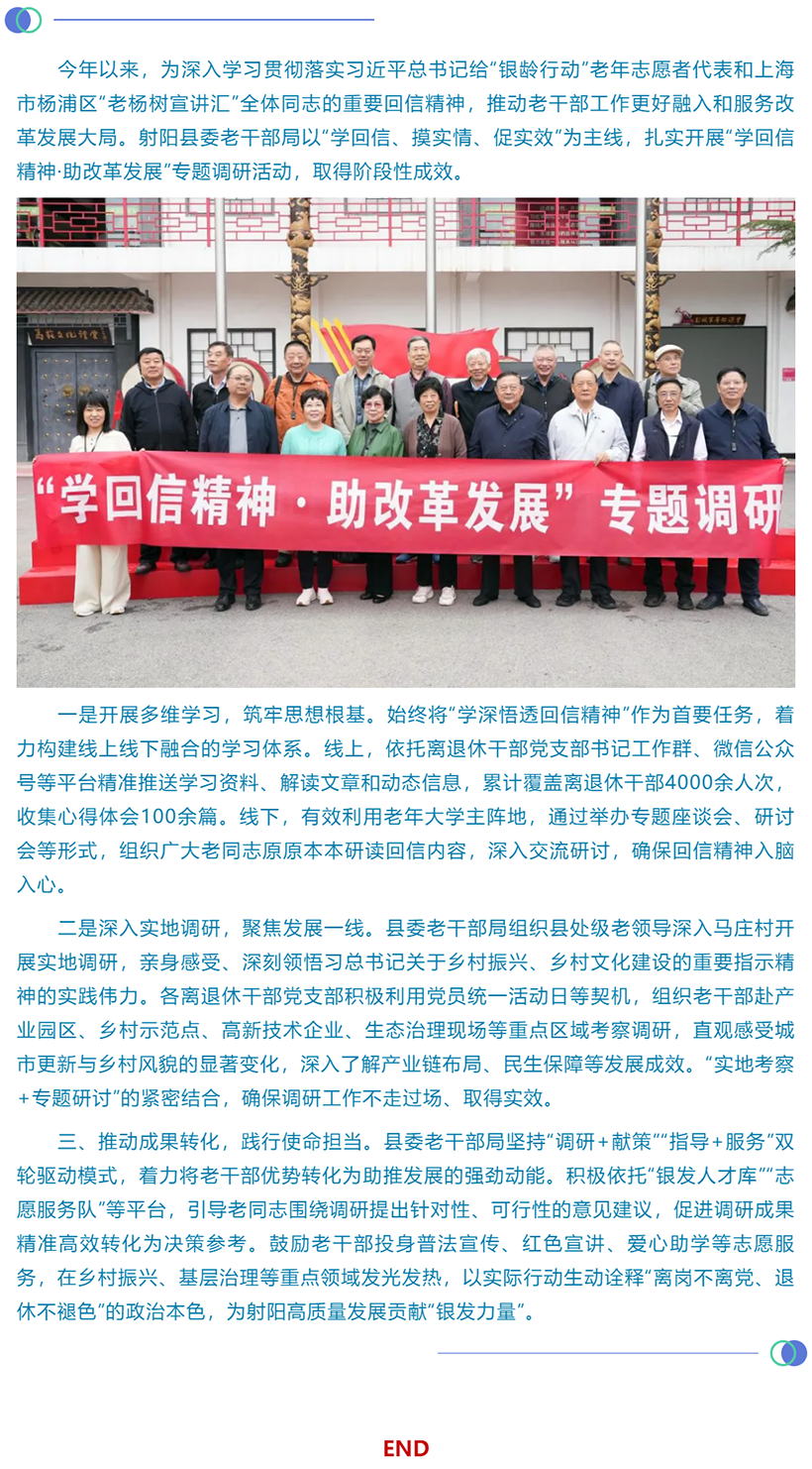 射阳:开展“学回信精神·助改革发展”专题调研活动