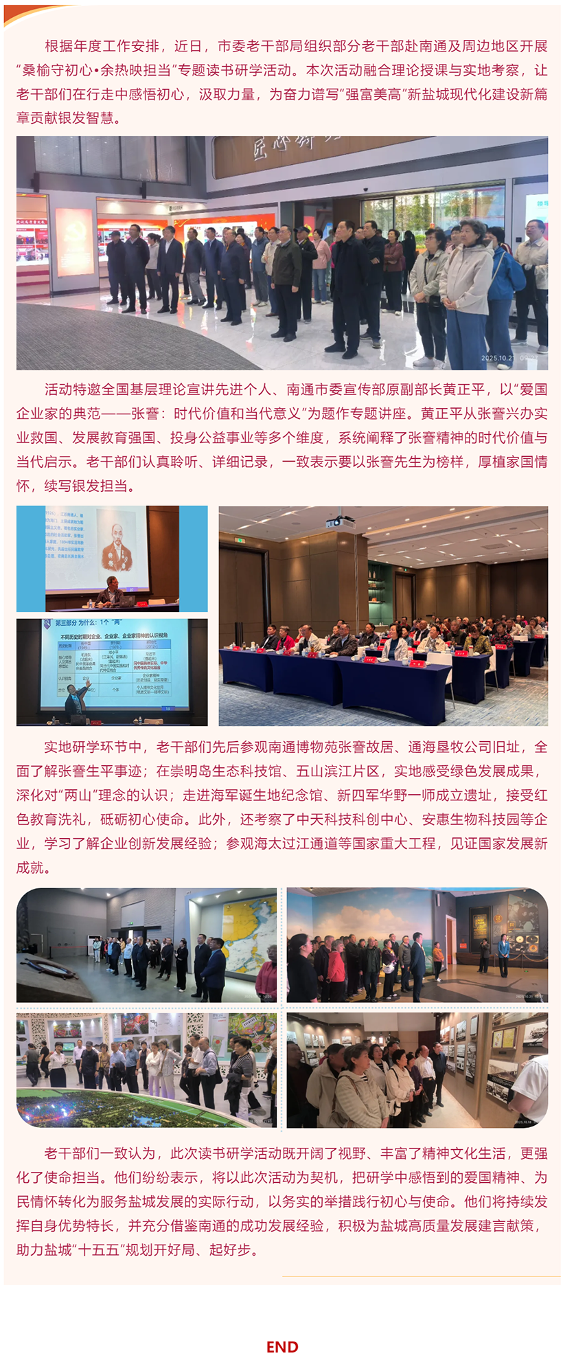 我市老干部赴南通开展“桑榆守初心•余热映担当”