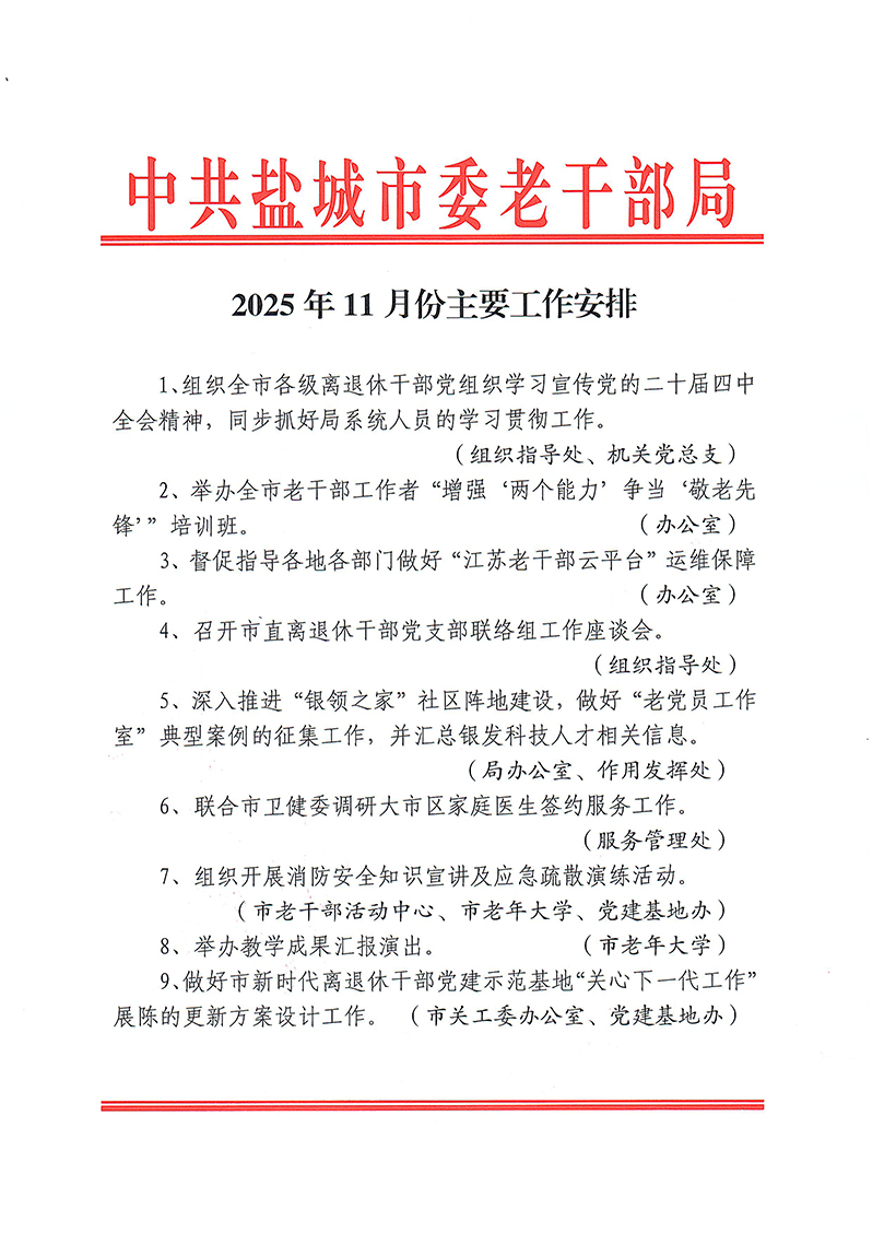 2025年11月份市局主要工作安排