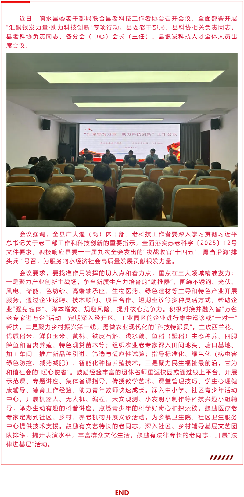 响水县召开“汇聚银发力量·助力科技创新”工作会议