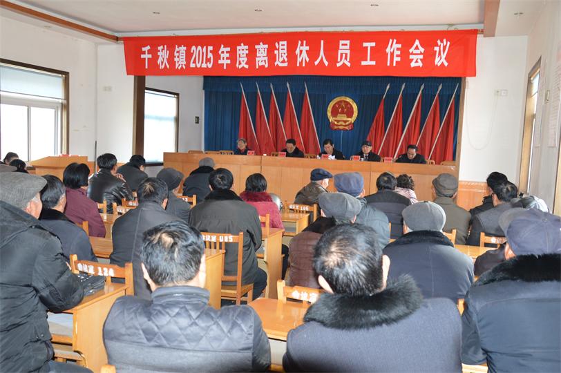 3月20日,射阳县千秋镇召开离退休人员工作会议。会议在总结了去年离退休干部工作的同时,对今年的离退休干部工作进行了部署。会上还表彰了一批先进集体和先进个人,并希望全体离退休干部向先进学习,为推动经济社会发展发挥余热,作出新的、更大贡献。