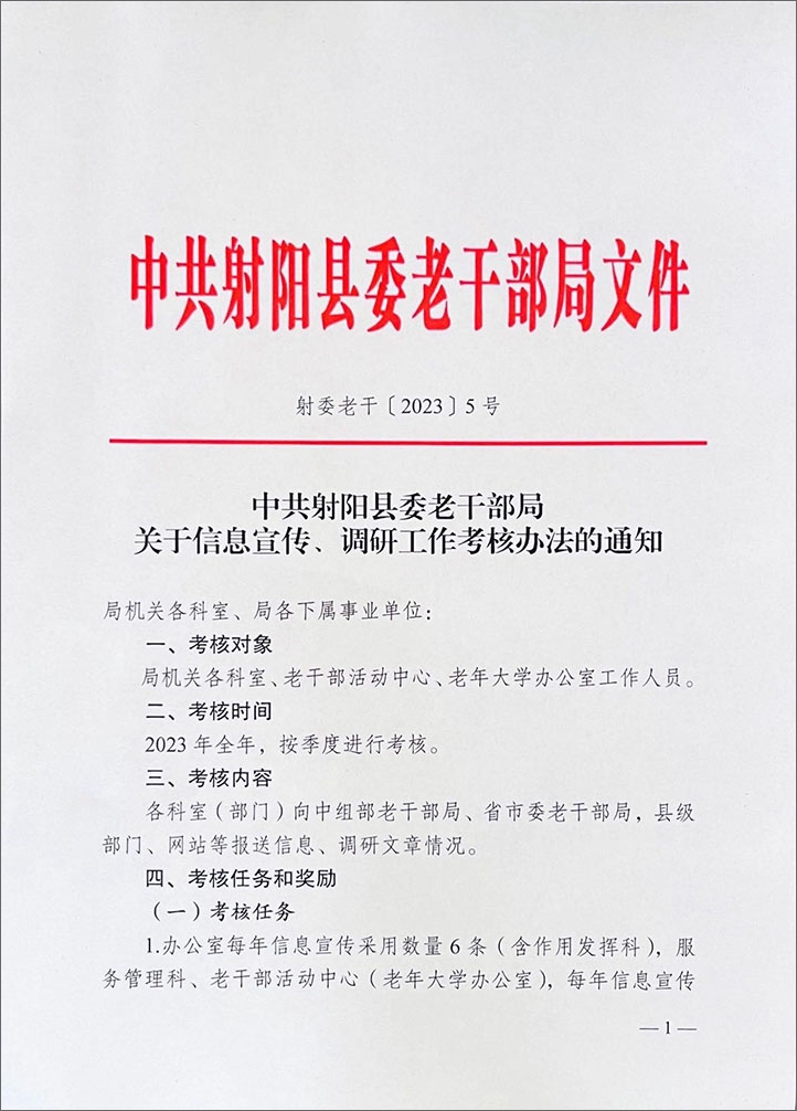 三、“制度+机制”,规范纪律强“动力”。抓制度建设,积极探索老干部工作制度,以巡察整改为契机,进一步健全完善老干部服务管理、待遇落实、作用发挥、党建建设等工作制度,进一步规范干部职工行为,提高机关运行效率。修订完善《信息调研及宣传工作奖励办法》,将信息调研工作与评先树优相结合,进一步激发干部职工的干事热情。完善机制,实行“每周一小结、每月一汇报、每季一分析、年终一总结”工作推进机制,明确岗位职责、工作落实、监督考评、奖惩问责等机制体系。常态化开展日常考核,制定《局工作人员平时考核实施办法》,建立健全奖惩激励制度,坚持开展评先选优、树立典型活动,并对选树的优秀典型进行表彰奖励,极大激发老干部工作者的工作热情和内在动力。