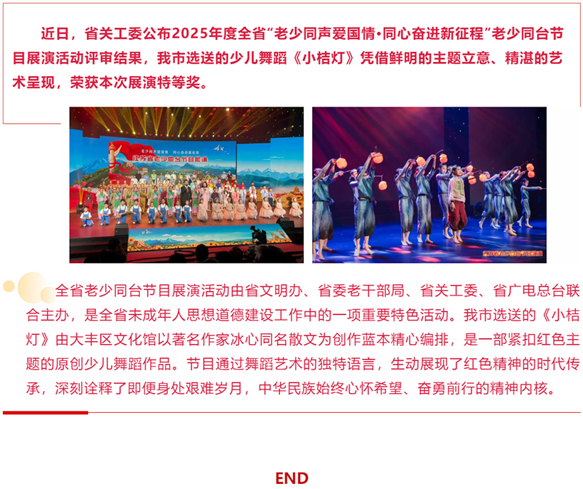 我市选送节目《小桔灯》参加全省老少同台展演活动荣获特等奖