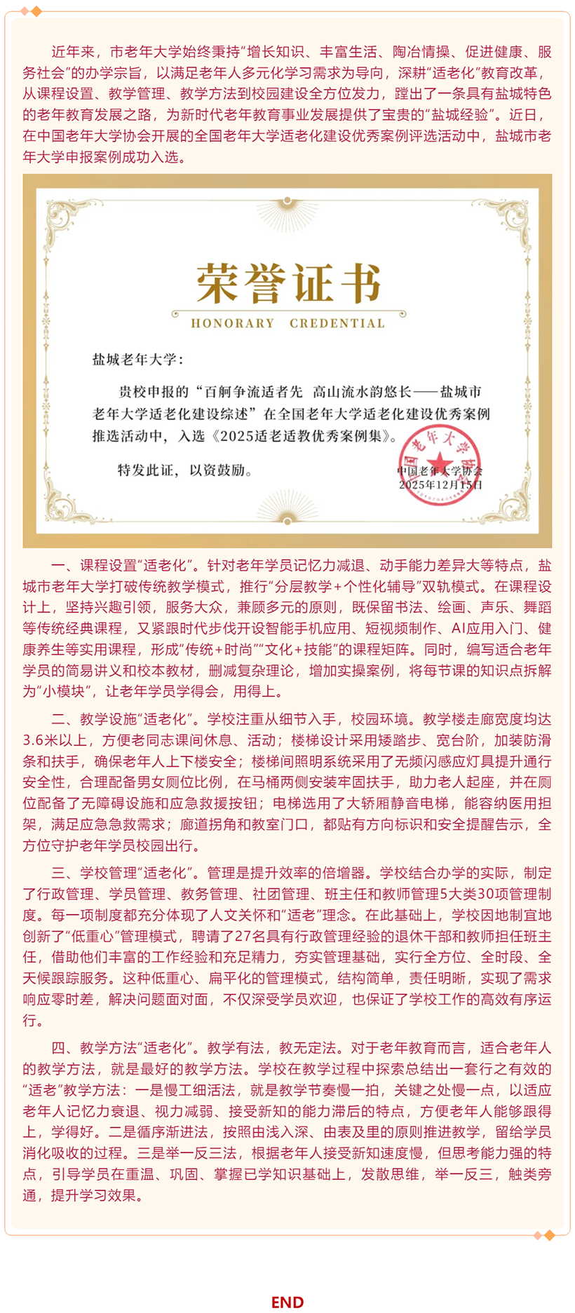 市老年大学申报案例入选全国老年大学适老化建设优秀案例