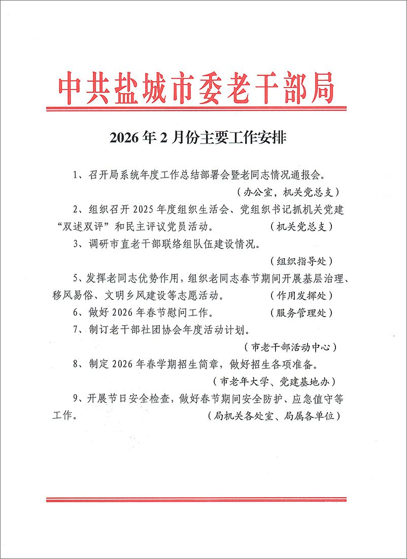 2026年2月份市局主要工作安排